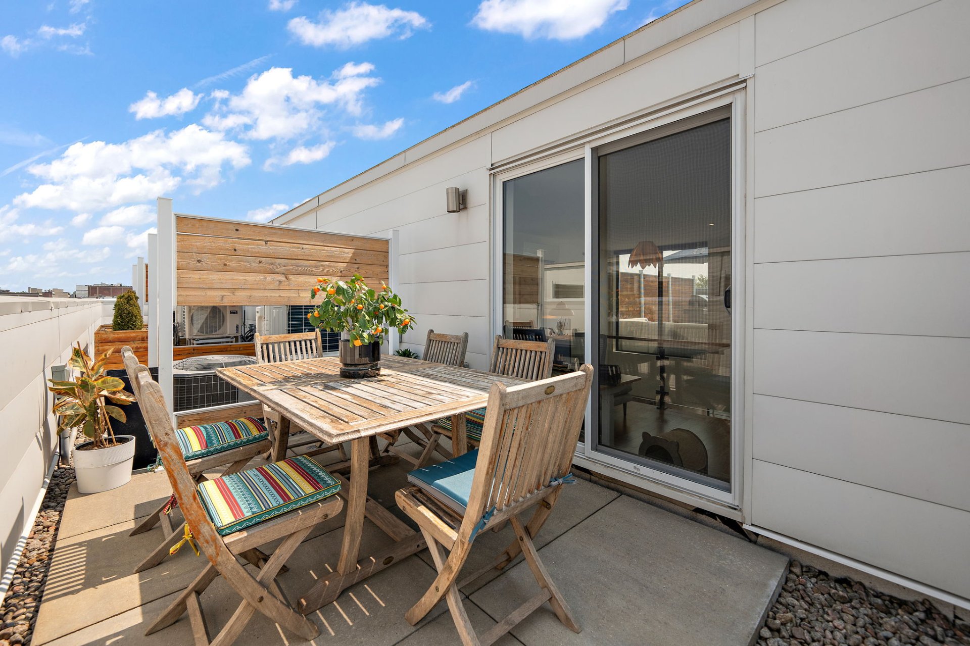 All appliances: refrigerator, cooktop, stove, range hood, washer and dryer. Light fixtures, window coverings, teak table on the terrace with 6 chairs.
