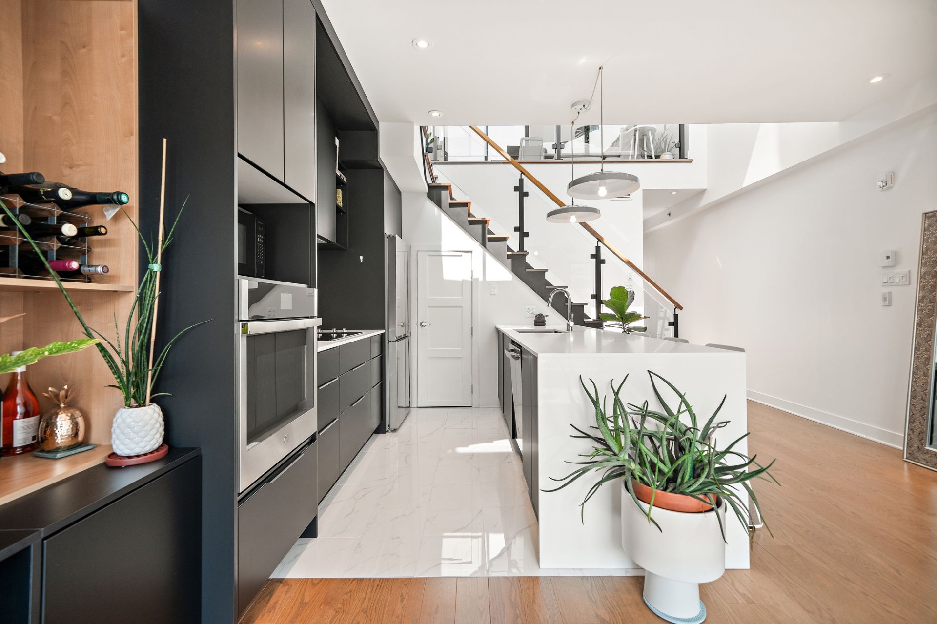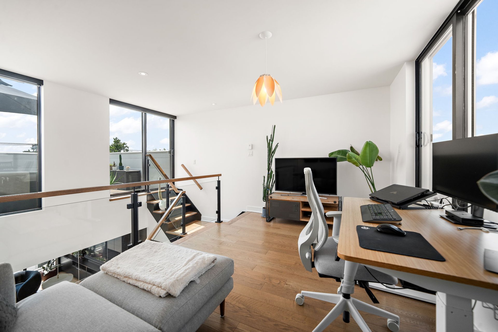 Discover this exceptional penthouse in a dream location with breathtaking panoramic views of the Mount-Royal! Boasting high-ceilings allowing for an abundance of natural light, this condo features 2 bedrooms, including a versatile mezzanine--perfect for a home office or 2nd bedroom. Enjoy two large private terraces with built-in planters, ideal for relaxing or for summer evenings spent entertaining loved ones. Located in the highly sought-after Petite-Patrie neighborhood, everything you need is within reach. This property combines contemporary design, comfort, elegance, and a vibrant urban lifestyle with an unparalleled walk score.