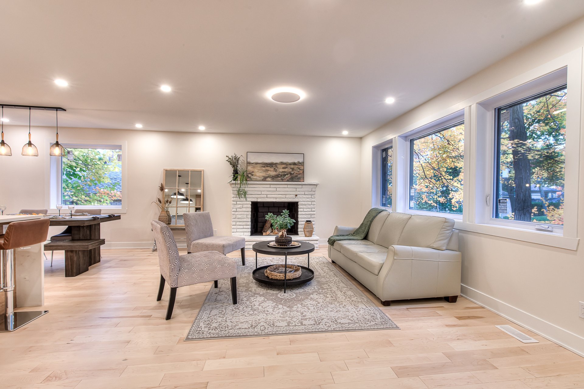 Stunning fully renovated split-level home offering 5 bedrooms (3+2), 3+1 bathrooms, and over 2,000 sq.ft. of living space. Features a new open-concept kitchen, updated plumbing, electrical, insulation, and enlarged windows. Three bright living rooms, a finished basement, and a primary bedroom with an ensuite bathroom. Set on a 12,000+ sq.ft. lot with a heated garage, 3-season patio, large backyard, and 8-car driveway. Located outside the flood zone and has never been flooded. Turn-key!